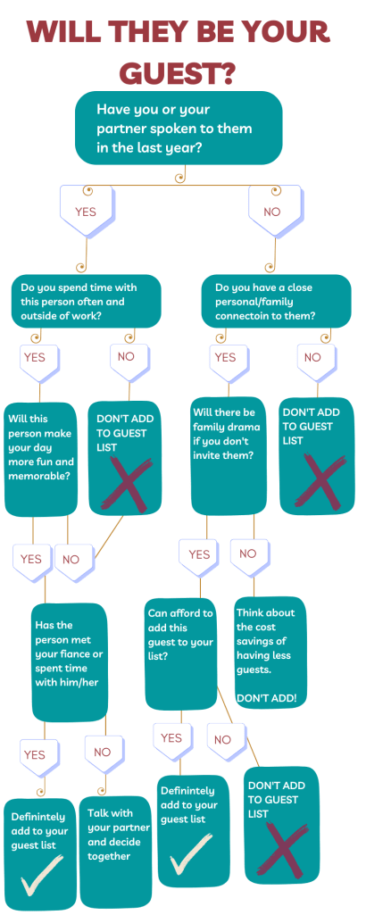A tiny guest list can give you more low-waste solutions that wouldn’t work with a larger wedding. For example You can fit your celebration in a family member’s backyard. Zola has a great article on keeping the list small here. Or use our handy chart: