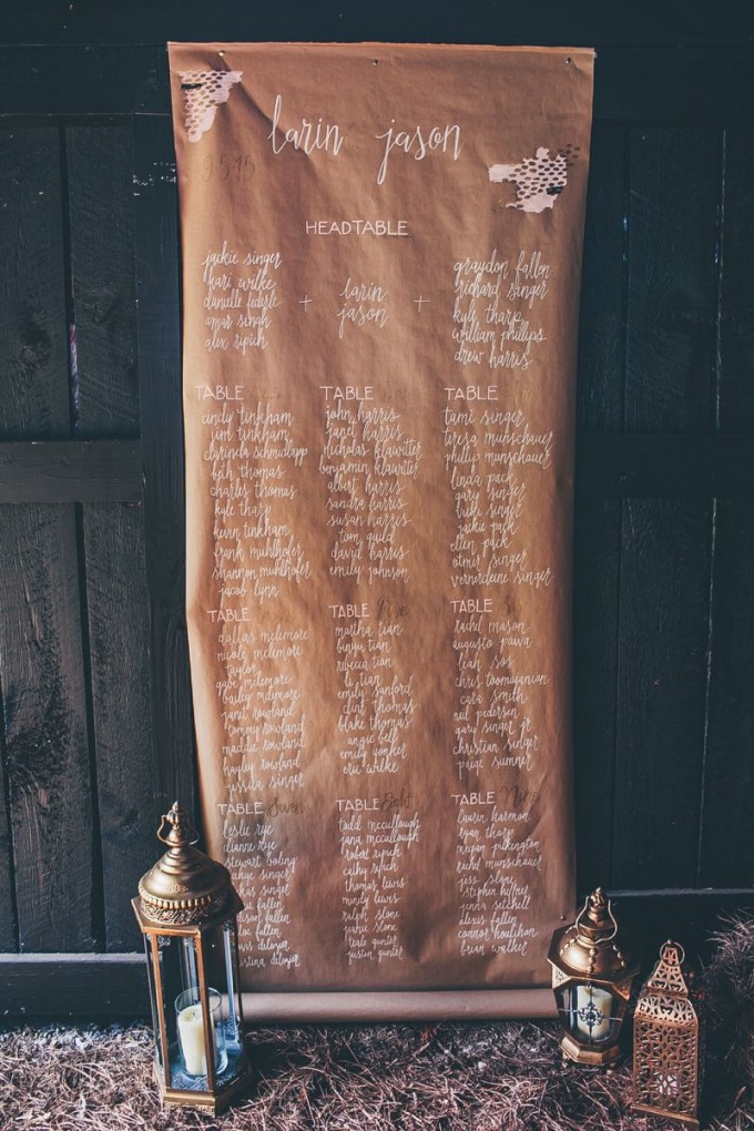 - Seating Chart. There are certainly many opinions on having a seating chart. We understand it may seem a bit formal but organization can take away stress. This gives guests direction on where they will be during the reception. Additionally, you can ensure that the tables have the right balance of guests who would be comfortable together. Last but not least this is also an easy way to separate people that won’t get along. The reception is a time for you to enjoy and relax. You don’t want anything to upstage this sweet moment! There are so many wonderfully creative options. We especially love this diy option with butcher paper and this fun surf board creation.